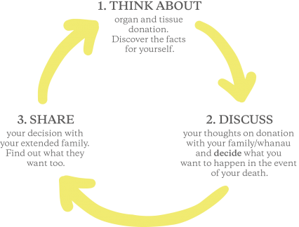 Discuss your thoughts on organ and tissue donation with your family or whānau, significant others or those people who would be at your beside if you were critically ill.