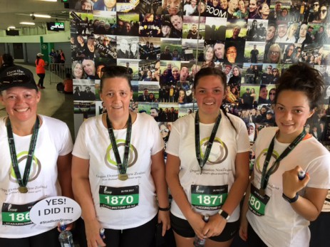 Yesterday Lisa, her sister and her two nieces participated in the Eden Park Stadium Stomp – a 5000 stair challenge up and down and around Auckland’s Eden Park. They wore caps and organ donation t-shirts Lisa had made to help raise awareness and encourage others to have the important conversation.